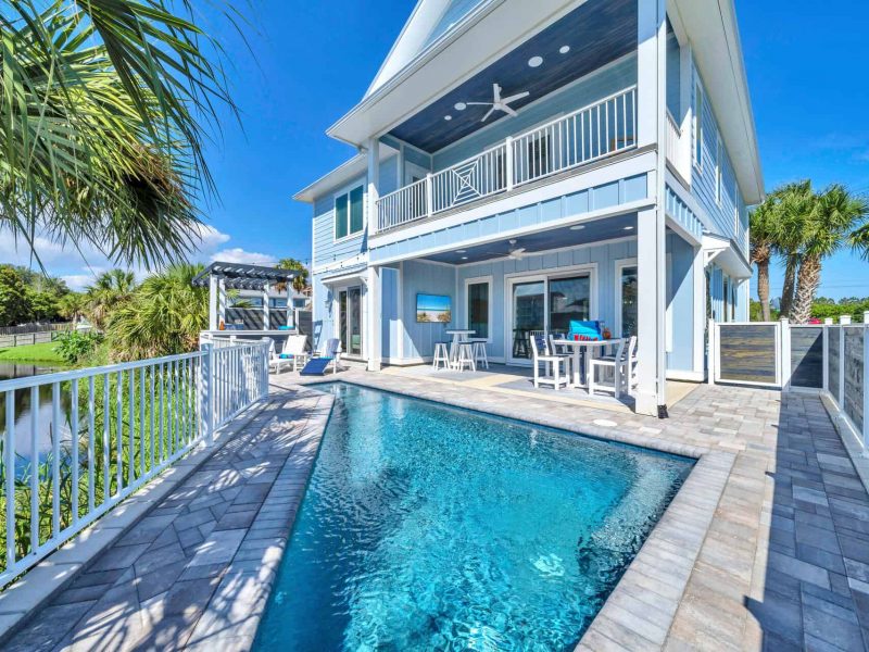 Luxury By The Beach: New construction Coastal Craftsman Luxury Beach House. No expense was spared in the completion of this stunning lakefront property that also features views of the Gulf of Mexico. This property is loaded with upgrades and special features to make your beach vacation one of a kind. Luxury By The Beach features 5 Bedrooms, 4 full bathrooms, and an outdoor living space with an amazing private Pool overlooking a tranquil lake and a summer kitchen with built-in KitchenAid grill. Spanning two levels and providing over 2900 sq. ft of indoor living space, Luxury By The Beach is sure to please the most discerning traveler. No detail was overlooked in the design and furnishing of this home. Just a short walk to the beach. Some of the upgrades include integrated speakers through the home and pool deck, 4 Zone Sonos System, 8 Massive Hi-Definition TVs, outdoor lighting and Summer Kitchen with bar seating and a built-in KitchenAid grill. Accommodates up to 16 lucky guests.