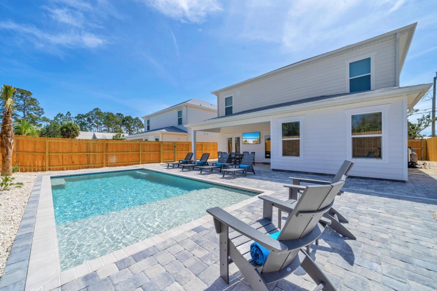 Shore Thing - Stunning, New Coastal Craftsman Masterpiece. Shore Thing features 4 Bedrooms, 4.5 bathrooms and a huge outdoor living space with a private pool. Spanning two levels and providing over 2831 sq. ft. of indoor living space, Shore Thing is sure to please the most discerning traveler. No detail was overlooked in the design and furnishing of this home. Accommodates up to 18 lucky guests in beds.