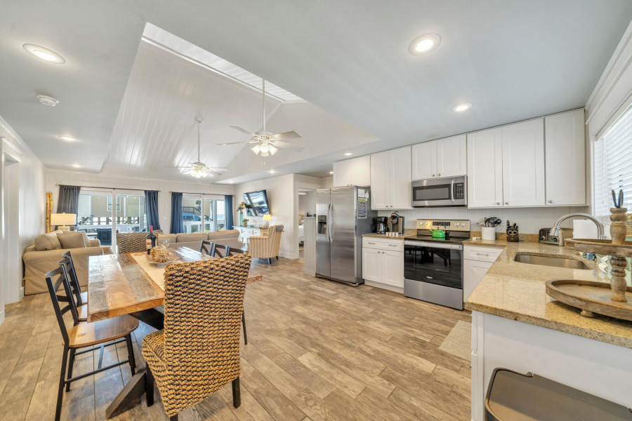 -Sleeps up to 10 GuestsUpon entering this amazing residence, you will find the open floor plan offers spectacular gulf views. The kitchen is a Chef's dream with top-of-the-line appliances. All equipment and utensils are in place to prepare a family feast after the perfect day at the beach. The dining area features seating for 8. Perfect for family time, the living area features a 65” flat-screen tv, and a queen sofa sleeper – it’s the perfect place to relax after a day in the sun!